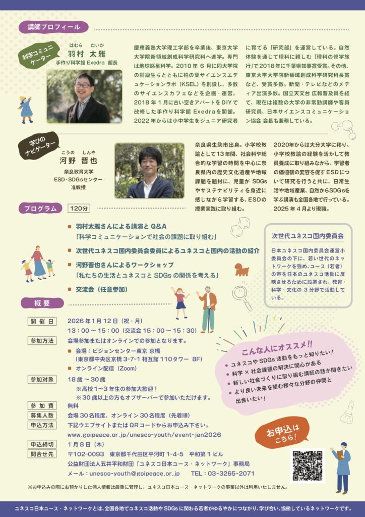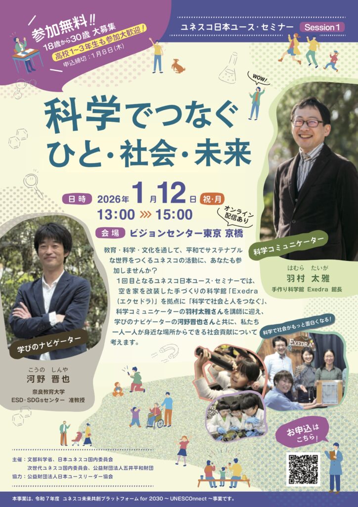 【開催のお知らせ】「科学でつなぐ ひと・社会・未来」ユネスコ日本ユース・セミナー 1月12日@東京&オンライン
