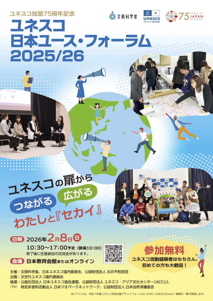 【参加費無料】ユネスコ加盟75周年記念 「ユネスコ日本ユース・フォーラム2025/26」
