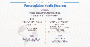 ベネフィット | 全国のユースとネットワークを築き、次世代につながる仲間を得られる 2/28–3/1は宿泊型。夕・朝食付き/交通費補助あり(上限1万円) 修了者には「活動修了証」を授与 |