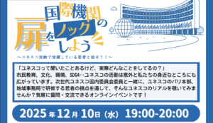 【参加無料!12/10 開催】「国際機関(ユネスコ)の扉をノックしよう」~ユネスコ活動で活躍している若者と話そう!~新着!!